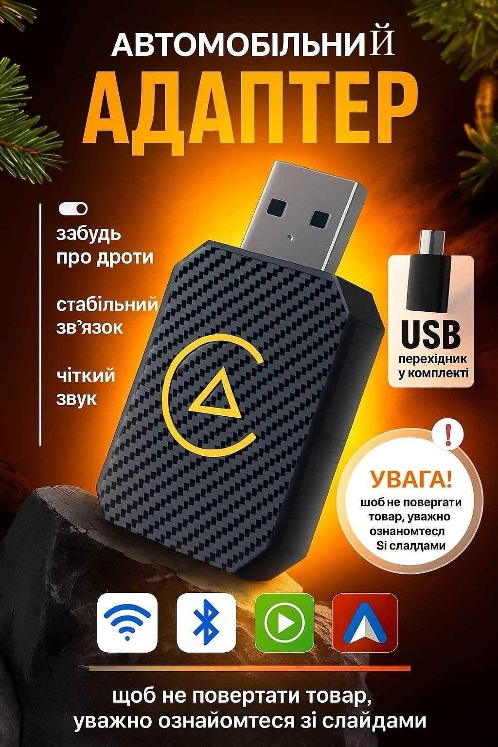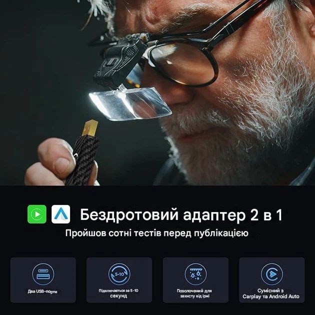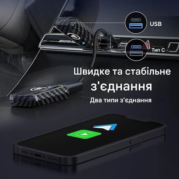 Дуже зручна штука! Під’єднав один раз — і тепер телефон сам підключається без проводів. Музика, карти, дзвінки — усе працює без затримок. Нарешті позбувся постійних кабелів у машині.