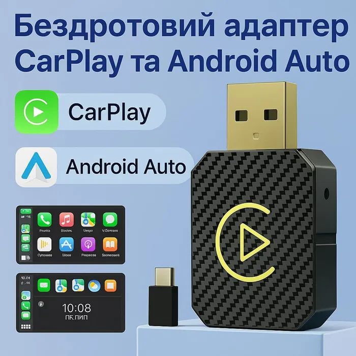 Цей компактний бездротовий модуль дозволяє перетворити стандартний дротовий CarPlay або Android Auto у повністю безкабельний формат.